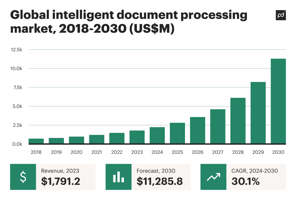 Today, the intelligent document processing market is projected to grow at a 30.1% CAGR from 2023 to 20305, driven by ADP’s efficiency in reducing manual, error-prone tasks.