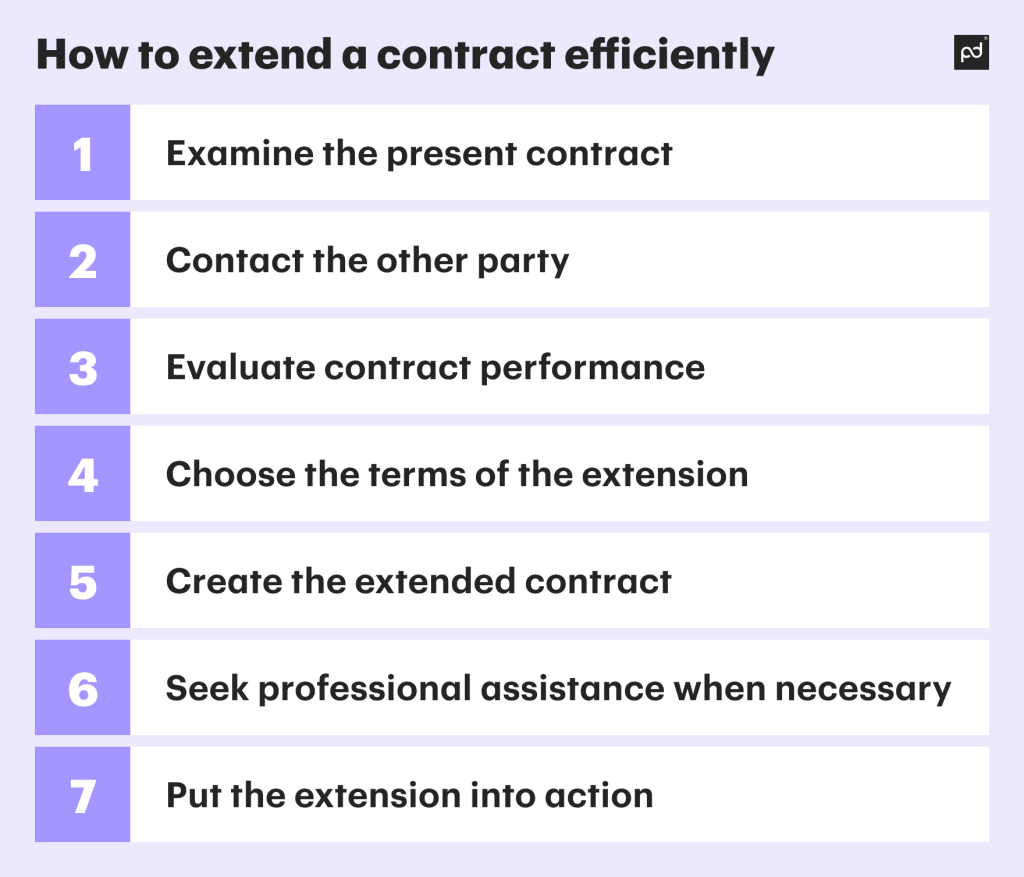 - Efficiently extending a contract requires examining the existing document and evaluating its performance.