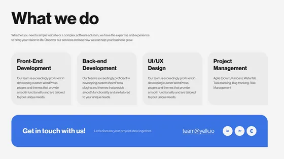 At YELK, we build custom software for startups and businesses worldwide. Our team delivers tailored web platforms, websites, mobile apps, e-commerce solutions, and complete software products.